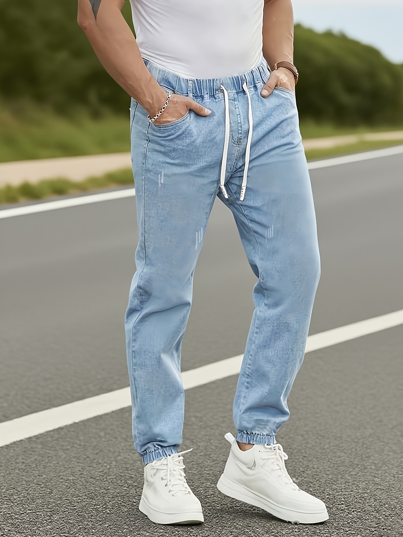 - Distressed denim joggers: Great for adding character to casual fits.